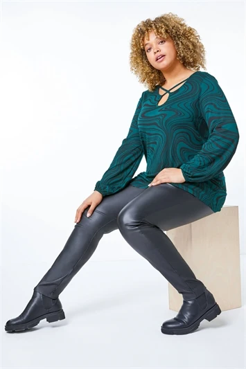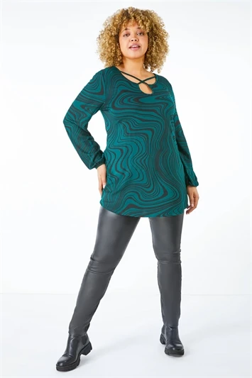 Give a nod to the dark floral trend with this curve, floral print, mesh top. Cut from a stretch, jersey fabric this piece features a feminine v neckline and full length, sheer, sleeves with thick shirred cuffs. It’s adorned in a striking, dark floral print, in on trend colours. Designed to pull on overhead for fuss free dressing, this top is perfect for your everyday. Add leather look trousers and heeled boots for a cute but casual look!
