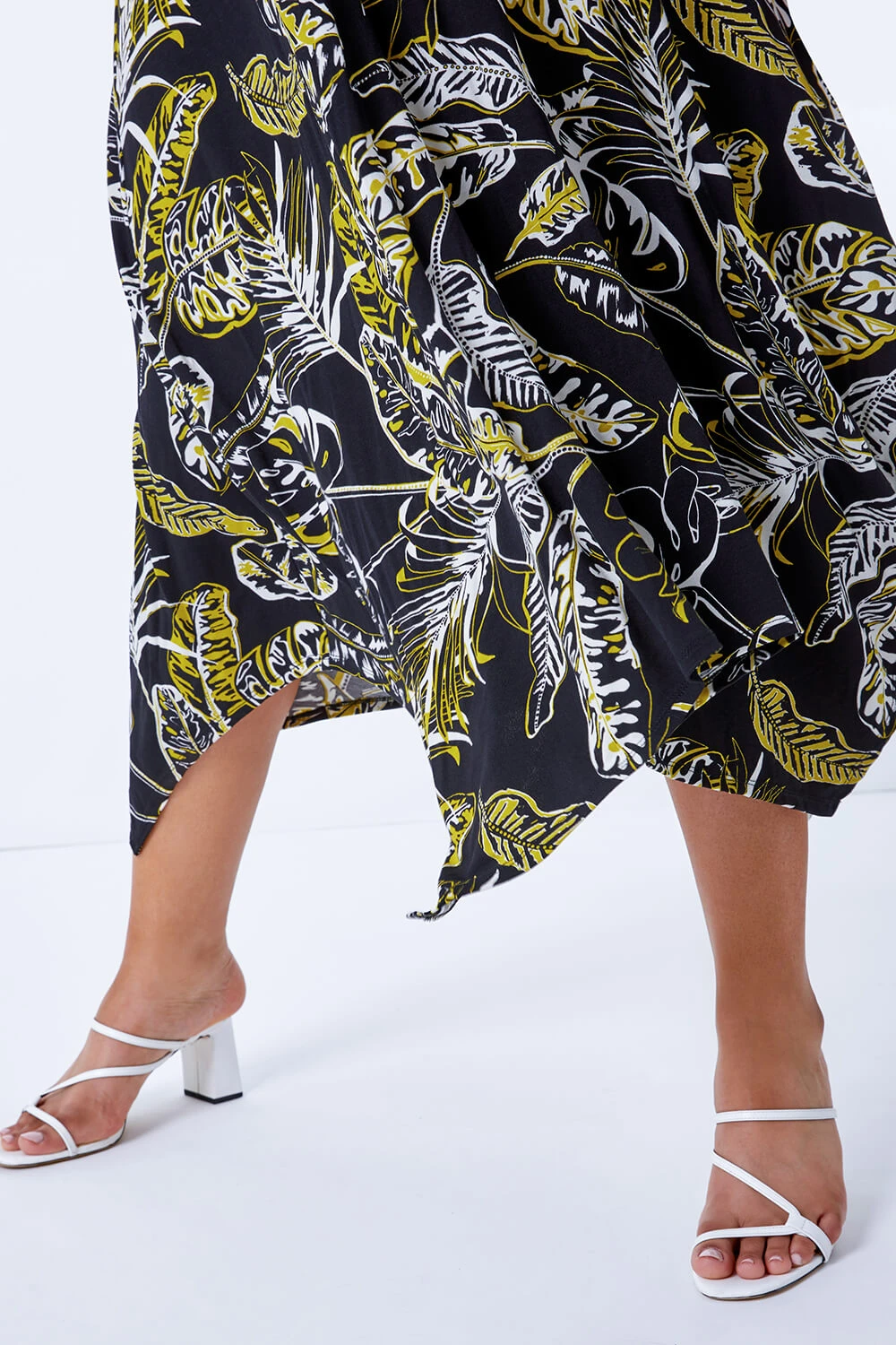 Your summer staple is here and ready to be worn. Cut in a jersey stretch material this Roman Curve dress is perfect for comfort, in a hanky hemline this number has a round neckline and is sleeveless. Ideal for day to night, for a simple day look style with flats and a tote and for the evening simply add heels.