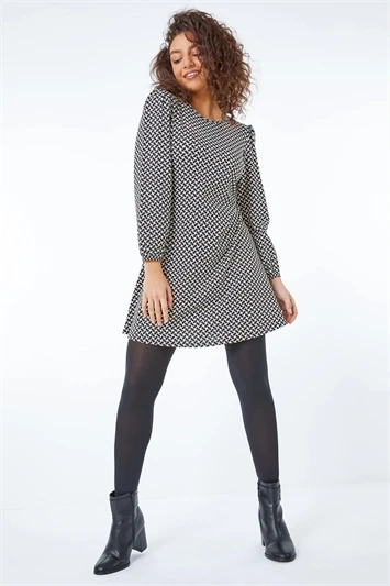 Pretty in petite, this floral print fit and flare dress is a perfect transitional piece. Featuring a round neck line with 3/4 length sleeves, this can be dressed up or down but perfect for casual day wear. Cut from a comfortable woven jersey fabric, this knee length number has no fastenings and is designed in a pull on, overhead style. Adorned in a delicate floral print this will look great with tights boots and your favourite gilet!