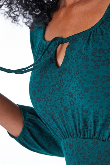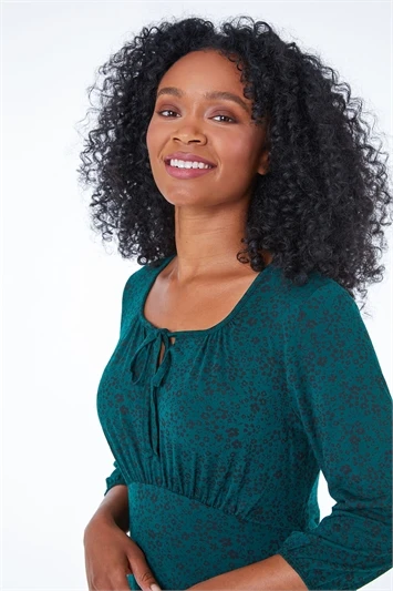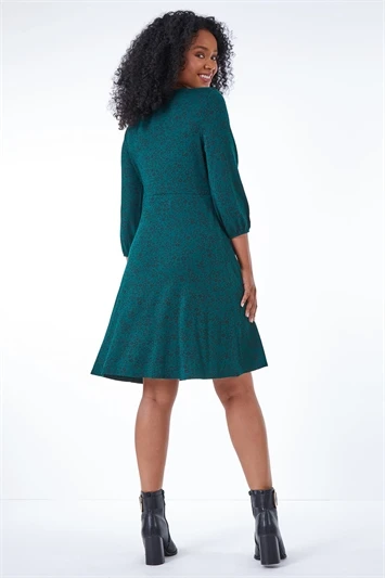 This petite, floral print dress is a must have this season. Its cut to a fun knee length and features a modest round neck line. Its designed in a flattering, fit and flare shape and adorned in a ditsy floral print. It boasts 3/4 length, flute sleeves adding that extra charm! Pair with ankle boots and tights for cooler weather or keep it fresh with trainers and a denim jacket!