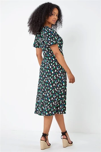 Spring into the new season in style with a pop of print and a pretty silhouette! This Petite jersey blouse is adorned with spots and has a flattering v-neckline. Topped off with a gathered empire line waist, this style is crafted from a stretchy jersey with a soft peplum shape. This top is easy to pull on for those everyday occasions with frilly short sleeves for all day comfort. Transition into Summer by adding a denim jacket and cropped stretch trousers or dress it up with jeans and wedges.