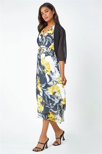 Take your smart casual wardrobe to the next level with this v-neck vest top. Detailed with a crossover at the front to create a flattering silhouette, this woven top is a striking and feminine piece to elevate your professional attire. This style is crafted with a stretch jersey waistband and a contrasting jersey back for a comfortable all day fit. It comes with a metallic ring detail necklace to easily accessorise your look. Pair with smart trousers and your favourite heels for a desk to dinner ensemble!