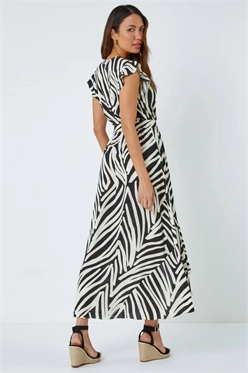 Take a walk on the wild side with this animal print shirt dress. Cut from a smooth woven fabric this dress features a smart collared neckline and a fully open front complete with sweet button fastenings. Relaxed 3/4 sleeves are finished with smart shirt cuffs, while a self-tie fabric belt creates shape at the waist. Pair with chunky boots and a leather jacket for a chic but edgey smart casual look!