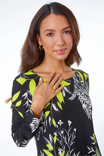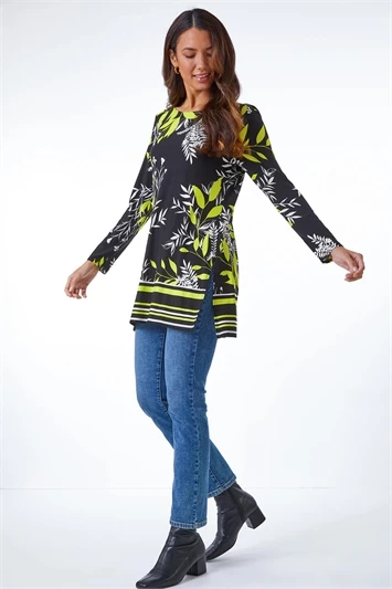 Stay on trend with this fabulous abstract animal print jersey top. Finished with 3/4 length sleeves, side pockets and a round neck, this comfortable piece will be the perfect addition to your wardrobe. Complement yours with dark trousers and light trainers for a perfect look this season.