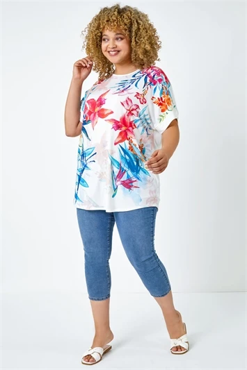 Be bold in prints this Summer with our Curve contrast blouse. Cut from a lightweight woven fabric, this top has a round neckline with a sweet tie detail and keyhole cut out. Finished with ruching at the neck, this style has 3/4 length sleeves and comfy elasticated cuffs with a silky crepe fabric. This vibrant floaty top will have you ready for the beach bar in a flash! Pair this piece with colourful shorts and sandals to ooze holiday glamour this season.
