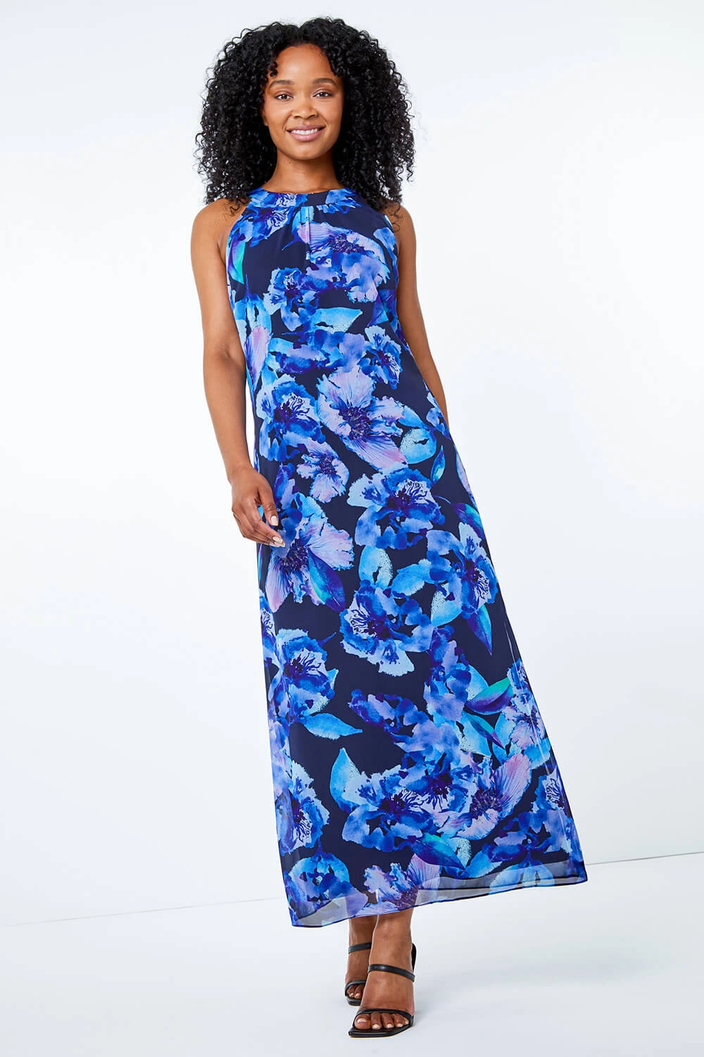 Get occasion ready in this stunning Petite floral maxi dress. Crafted in a sheer chiffon material with jersey lining this round neck dress has a keyhole button back neck detail, a monochrome floral print that is just sophisticated in every way. Complete the look with a shrug and heels for a day at the races or your next wedding party!