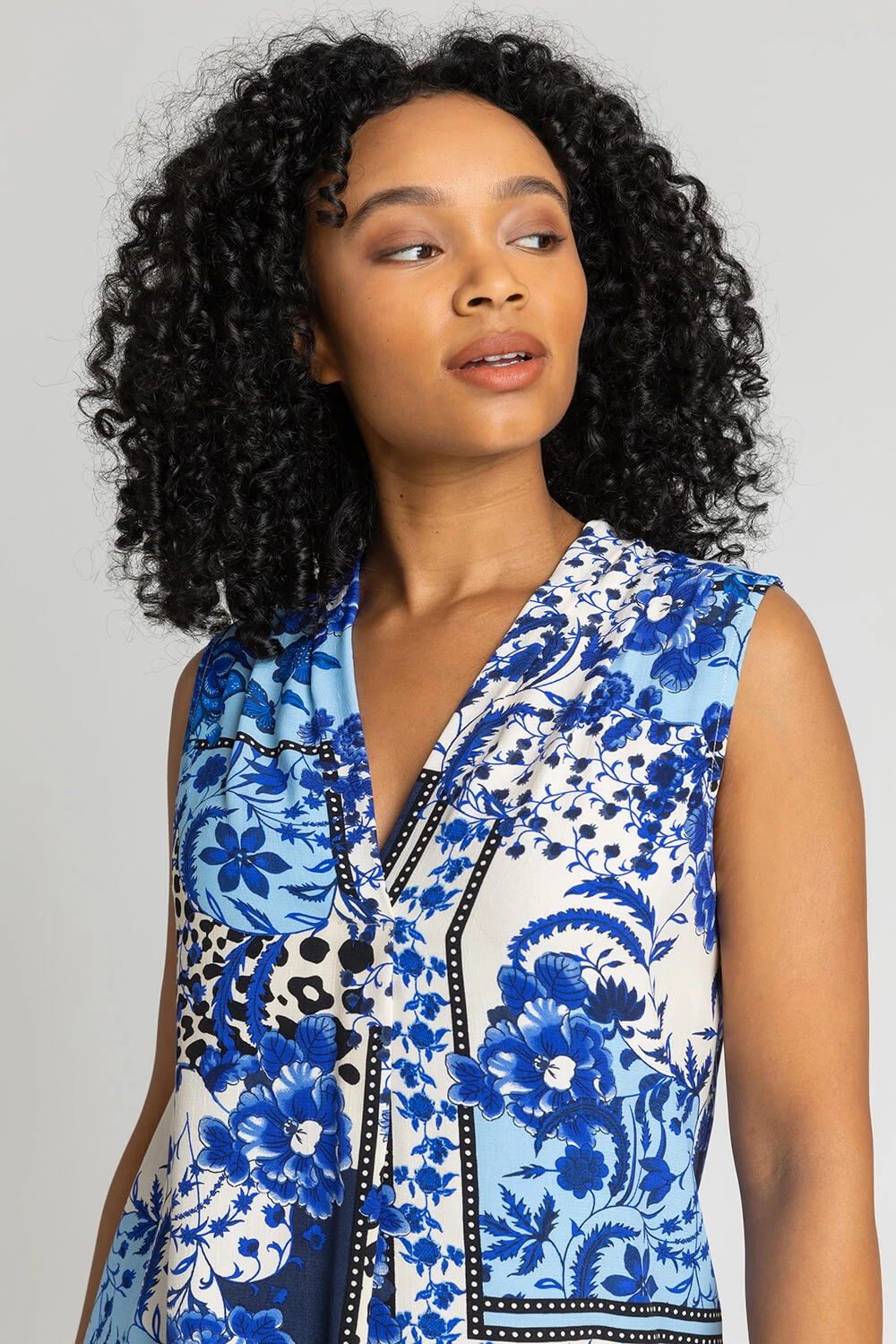 Printed to perfection for the whole season, this sleeveless piece is a holiday must-have for your suitcase. Cut to a relaxed fit, this lightweight vest top has an all-over mixed print and a classic Roman favourite notch neckline. Perfect for casual looks, add cropped trousers and pumps for an effortless everyday style.