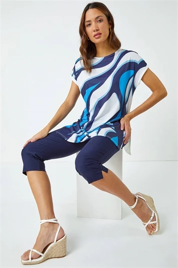 Work mesmerising swirl prints this season with this relaxed, printed overshirt. Cut from a smooth woven fabric this piece features a flattering notch neckline and fun 3/4 length sleeves with tabs. Adorned in a bright and playful swirl print this piece is perfect for the Summer months. Designed in a relaxed oversized fit this piece is comfortable and stylish. Pair with denim and trainers for effortless Summer style!