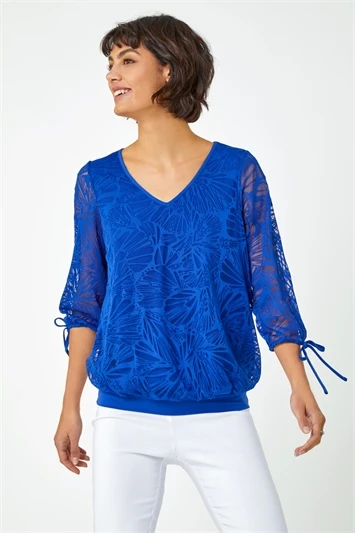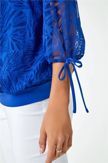 Adorned in a mesmerising, textured swirl print, this overlay top is far from basic! Cut from a comfortable jersey fabric this piece features a modest round neckline and sweet, short sleeves. A unique overlay element adds interest and shape within the piece. Finished with an asymmetric hem this top is perfect with cropped stretch trousers and simple sandals for effortless Summer style!