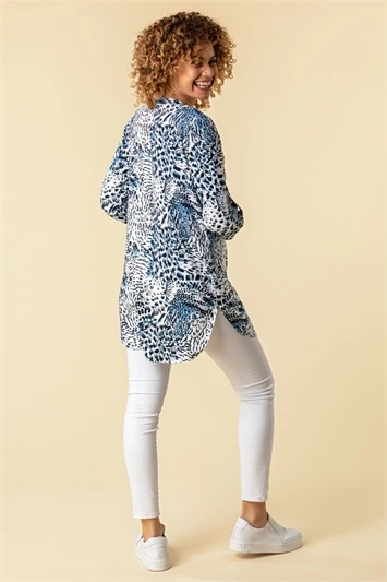 Elevate your smart casual wardrobe with this abstract tile print blouse! Cut to a flattering t-shirt shape with short angel sleeves, this floaty favourite can be dressed up or down to suit any occasion. This style features an easy pull on silhouette, loose woven body and flattering pleated neckline, ideal for those desk to dinner days. Style this top with cropped trousers or jeans for an effortless Spring look.