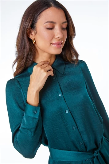 Make a statement in this satin ruffle top. Designed in a bright, on trend colour this top features a v neckline which is adorned with feminine frills. The ruffles join together and cascade down to the hem lime creating movement and interest. Full length sleeves with elasticated ruffled cuffs add extra detail. Pair with leather look trousers and boots for a evening out with friends!