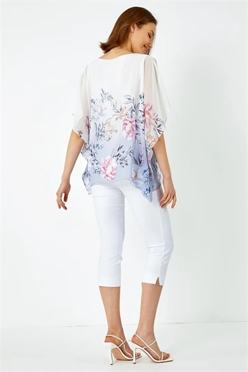 Pretty florals are a sure sign of Spring and this printed blouse will earn you some serious style points. Cut from a smooth woven fabric this blouse features a flattering notch neckline and ¾ length sleeves finished with adjustable tabs. A fully open front is complete with sweet button fastenings. The longline style provides extra coverage, making it the perfect style to pair with our cropped stretch trousers and heels!