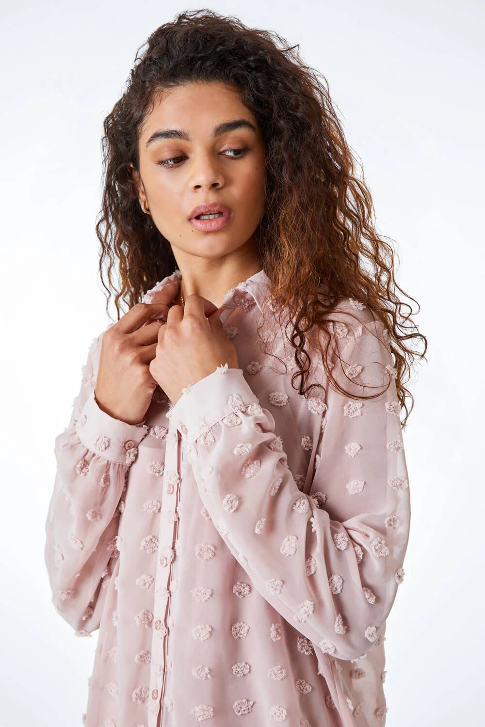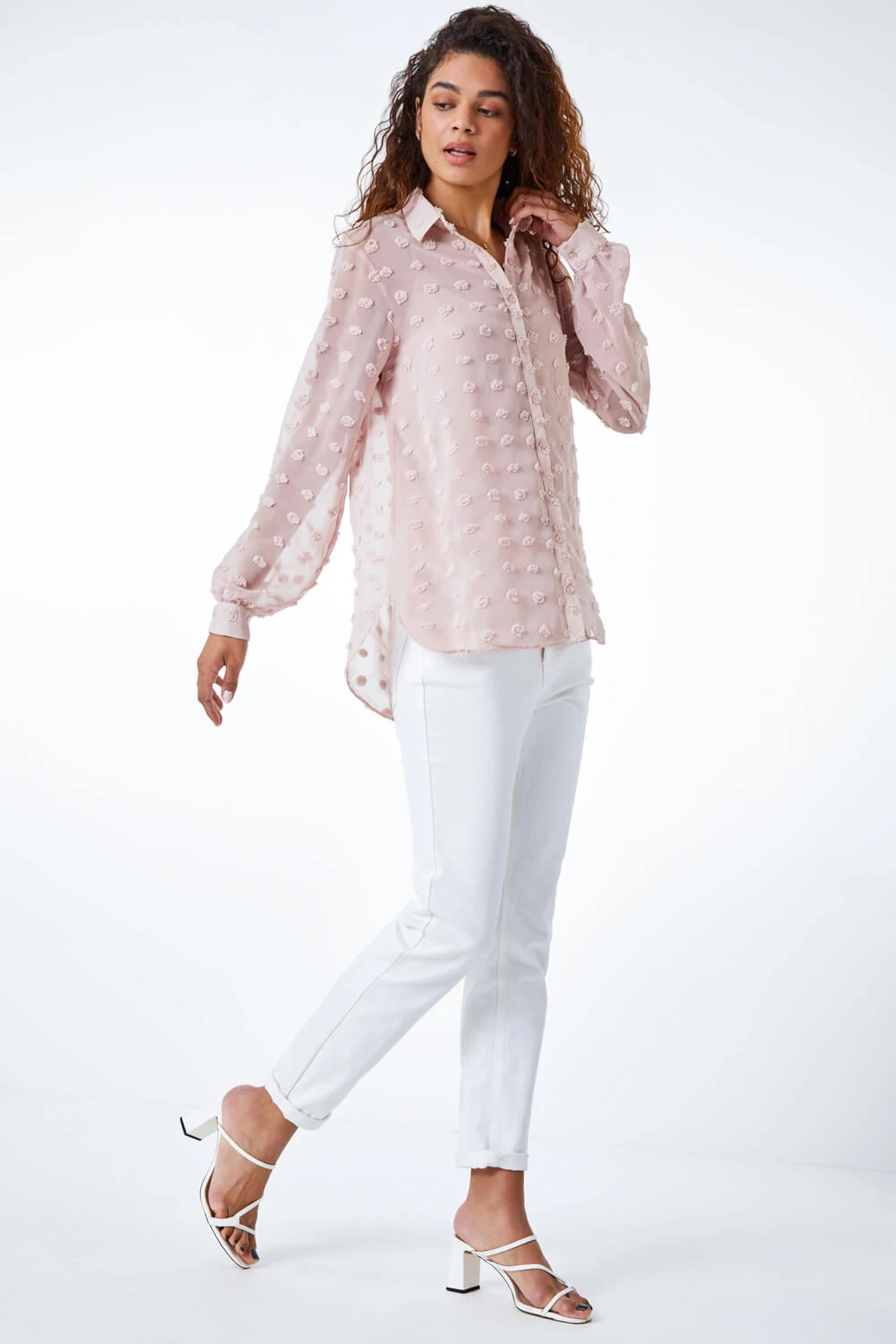 You’re spot on with this textured spot buttoned blouse. Perfect for anyone who’s on the go and wants to take their casual wear wardrobe to the next level. This collared shirt features a lightweight sheer fabric with a cami underneath, finished with button-through fastening and long sleeves. Wear it with faux leather jeggings and flats for a look that can take you from day to night.