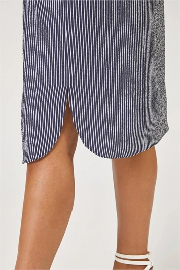 It’s time to elevate your capsule wardrobe collection with this timeless crinkle tie detail striped top. Designed with a flattering v-neckline with tie detail, this sleeveless style flows into a slightly lowered back hem. This lightweight number has a flattering soft crinkle textured fabric with an all over vertical stripe print. Paired with your favourite jeans and sandals for a summer ready look within seconds!