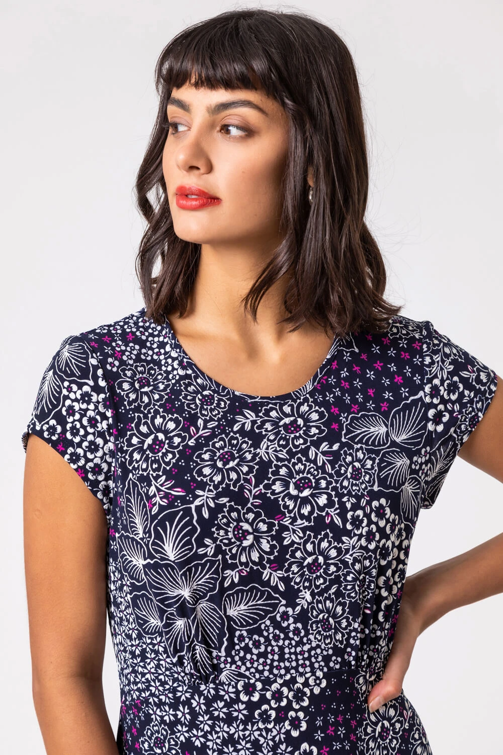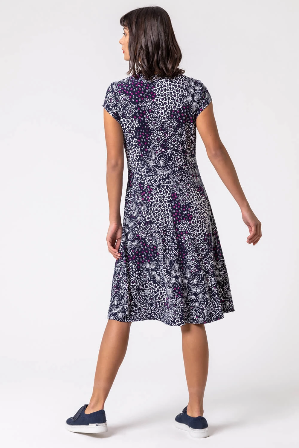 Mix up your daywear collection this season with on-trend ditsy prints and timeless silhouettes. This ditsy floral dress is cut in a relaxed fit and made from a soft stretch jersey making it comfortable for all-day wear. Featuring short sleeves and a fit and flare shape, you can keep cool whilst looking chic. Team with a light denim jacket and trainers for a casual style to take you from picnic in the park to lunch with friends.