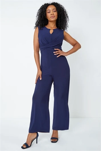 This petite belted jumpsuit comes in a classic yet on trend colour for a fresh and fun look. Cut from a smooth woven fabric this piece features a feminine v neckline, finished with a relaxed shirt collar and partially open, button front. Short sleeves keep the style cool, while the tie waist detail adds shape if desired. Pair with wedges for effortless Summer style!