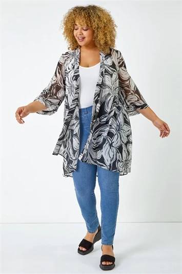 Effortlessly stylish, this geometric border print kimono is sure to become a staple in your Spring Summer collection! Sparkling hotfix embellishments add a unique detail to this Petite cover up, making it so easy to dress up in the evening. This style also features an edge to edge front, lightweight woven body and long sleeves for all day comfort. Keep it casual by wearing over the top of a white cami and jeans throughout the warmer season or dress it up with wedges for your next holiday.