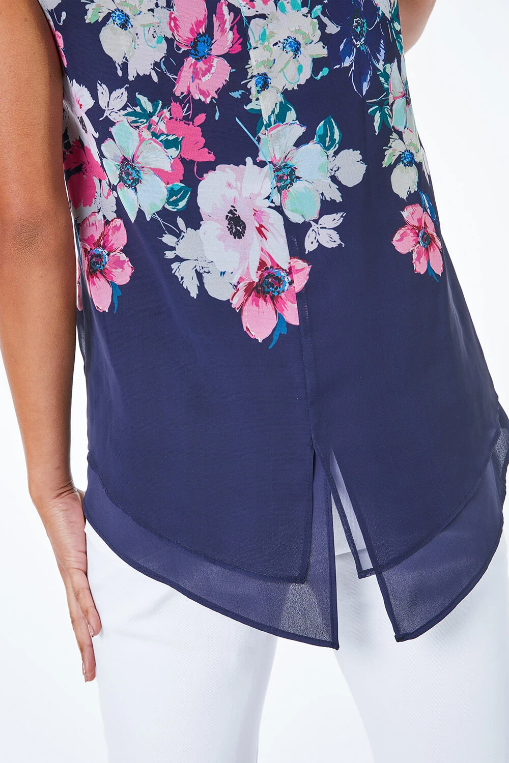 Taking you straight to the summer holidays with this floral printed Roman Petite vest top. Featuring a round neckline and sleeveless design, this vest has a double layer material and a longline back hem. This top is perfect for your casual-wear collection, pair with your everyday trousers or dress it up with statement jewellery and some sandals for a beach to bar outfit.