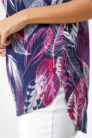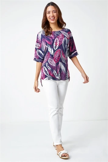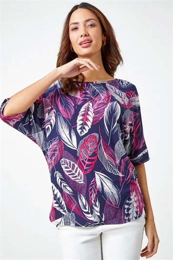 Relaxed fits and colourful natural prints are the perfect combination for your Summer wardrobe and this smock tunic has both in abundance. Cut from a cool, woven fabric this piece features a feminine notch neckline and ¾ length tiered, puff sleeves finished with elasticated cuffs. A relaxed waistline ensures a flattering, smock fit throughout the longline piece. Adorned in a bright leaf print this top also features delicate ladder lace detail across the chest and on the sleeves. Add cropped jeans and sandals for effortless boho style!