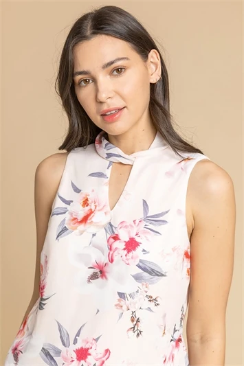 Be the belle of the ball at your Summer events with this bold floral print empire line dress. Cut to a classic fit and flare shape with an added flouncy hem, this frill detail dress will add a pop of colour to any occasion. This vibrant floral print has us dreaming of sunset dinners on holiday with its soft hues and sleeveless shape. Style with an ivory jacket and fascinator for a sophisticated day at the races style.