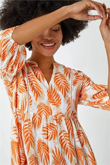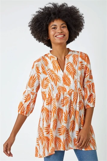 An abstract floral print in a bright on trend colour adorn this cool, sleeveless vest top. Cut from a smooth, woven fabric this piece features a feminine v neckline and delicate ladder lace detail. Designed to pull on overhead this piece is perfect paired with cropped stretch trousers and sandals!