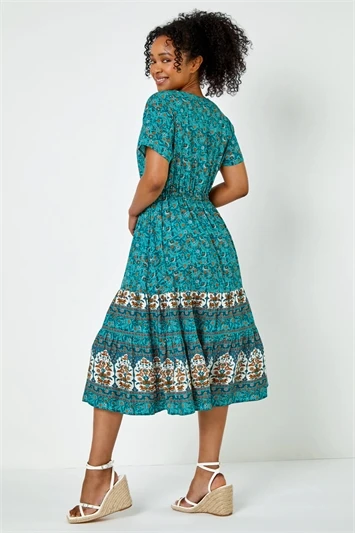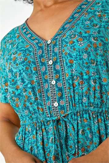 Adorned in a striking, aztec print, this petite maxi dress will have you holiday ready in an instant. Cut from a comfortable, stretch jersey fabric in a cool sleeveless style, this dress features a feminine deep v neckline. A slightly fitted, elasticated waist creates shape before the skirt falls in soft pleats in a fit and flare style to a modest maxi length. Pair with heeled wedges for warm Summer evenings!