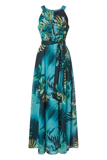 Tropical vibes are all the rage this season, an absolute must-have in your spring summer wardrobe! Cut from a lightweight fabric, this dress features a keyhole detail to back with a matching belt and a trendy tiered skirt. This halter neck maxi number is perfect for dressing up or down to suit your occasion, add sandals and a light jacket to keep your style casual or alternatively add heels and a clutch to add some flare to your occasion wear.