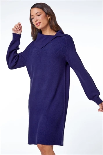 This jumper dress is the perfect wardrobe staple, suitable for the transitional seasons. This piece features a feminine v neckline and full length blouson sleeves, which fall from relaxed, dropped shoulders. Cut from a mixed, knitted fabric this dress has a ribbed hem and cuffs for a cosy and secure feel. Add tights and ankle boots for an effortless, on trend look!