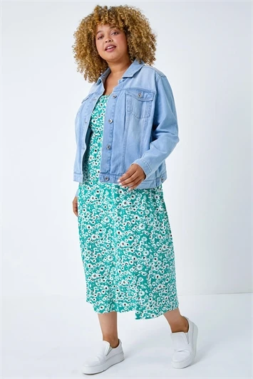 This summery maxi dress can be worn on and off the shoulders and is adorned in a pretty ditsy floral print for the warmer season. It has a softly elasticated shirring bodice and a maxi-length skirt with side splits to keep its silhouette a little loose and relaxed. Wear with flat sliders on holiday or with heels for a glam evening look to take you anywhere.