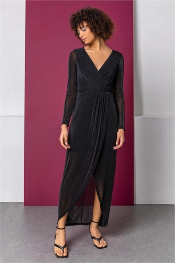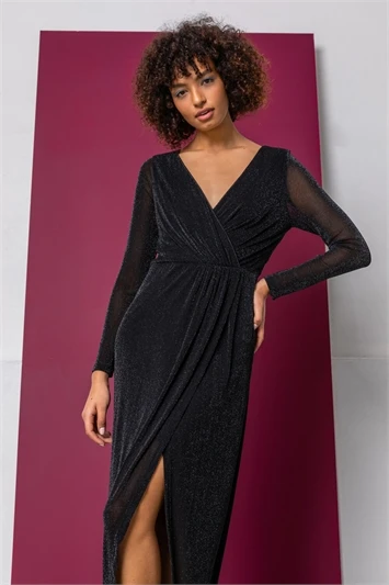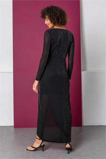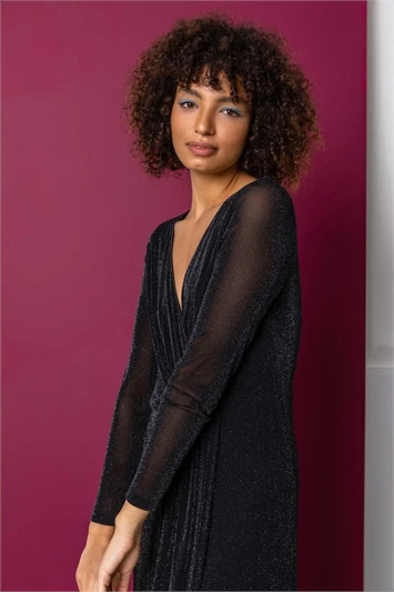 Covered in shimmering sequins, this metallic keyhole neck top cuts a flattering figure. Ideal for the festive party season, this jersey lined tee has a sparkling all over embellishment that will be sure to turn heads. Made with a high keyhole neckline and 3/4 length balloon sleeves with elasticated cuffs, this party top looks great paired with faux leather trousers.